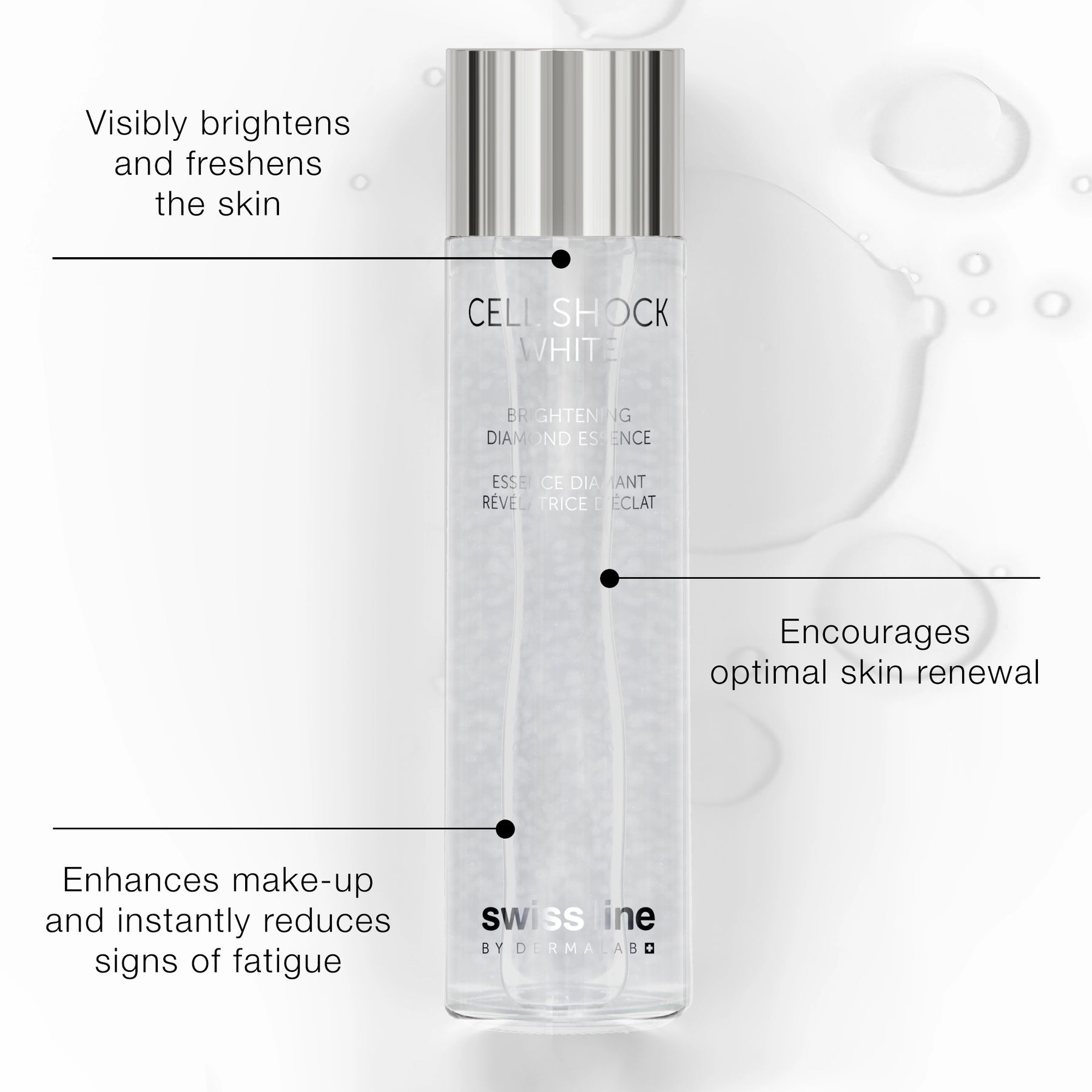 Einige Sekunden ruhen lassen, damit die Essenz einziehen kann, und anschließend Brightening Diamond Serum auftragen.